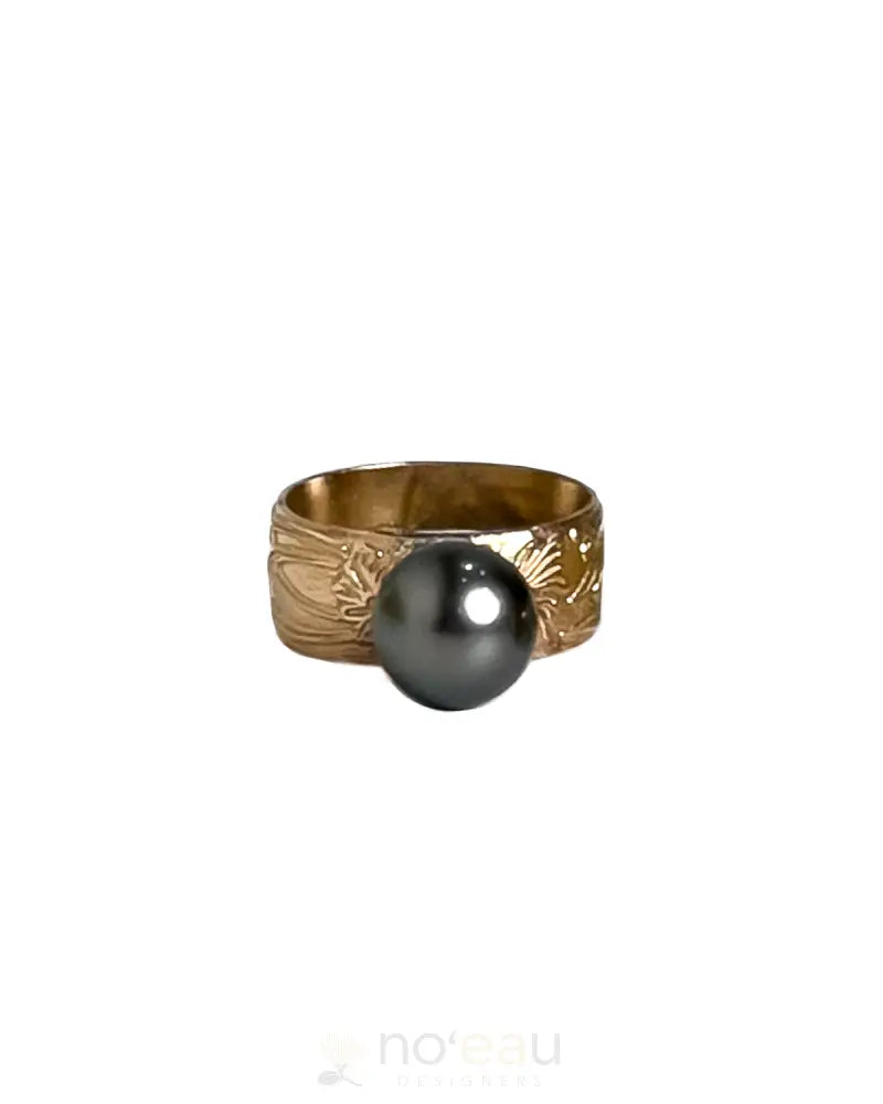 NOEAU - Heritage AAA Tahitian Pearl 7mm 14k Gold Filled Pua Scroll Ring
