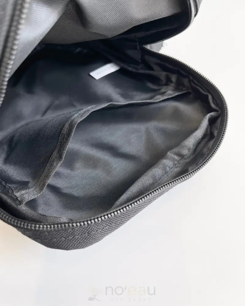 Features one exterior zippered pocket and one interior pocket.