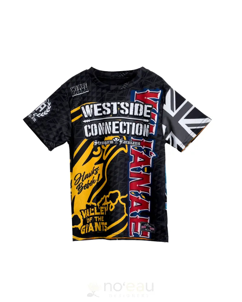 Celebrate your Westside pride with our STRONGARM HAWAIIANS Westside Connection Youth Sub Dye T-Shirt. This vibrant tee proudly represents Nanakuli and Waianae, perfect for young ones to showcase their island roots. Comfortable, durable, and designed with aloha, it's an authentic way for keiki to connect with their heritage while staying cool in Hawaii's sunshine.