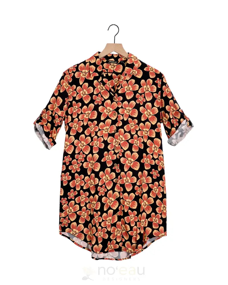 Embrace effortless elegance with this charming button dress, inspired by the delicate beauty of hau flowers. The thoughtfully placed buttons add both visual interest and practical functionality, making it easy to adjust the fit throughout your day. Crafted with care, this piece celebrates Hawaiian heritage while offering versatile styling options for any occasion. Whether you're heading to a casual gathering or a special event, this dress supports your desire to feel confident and comfortable in something truly special.
