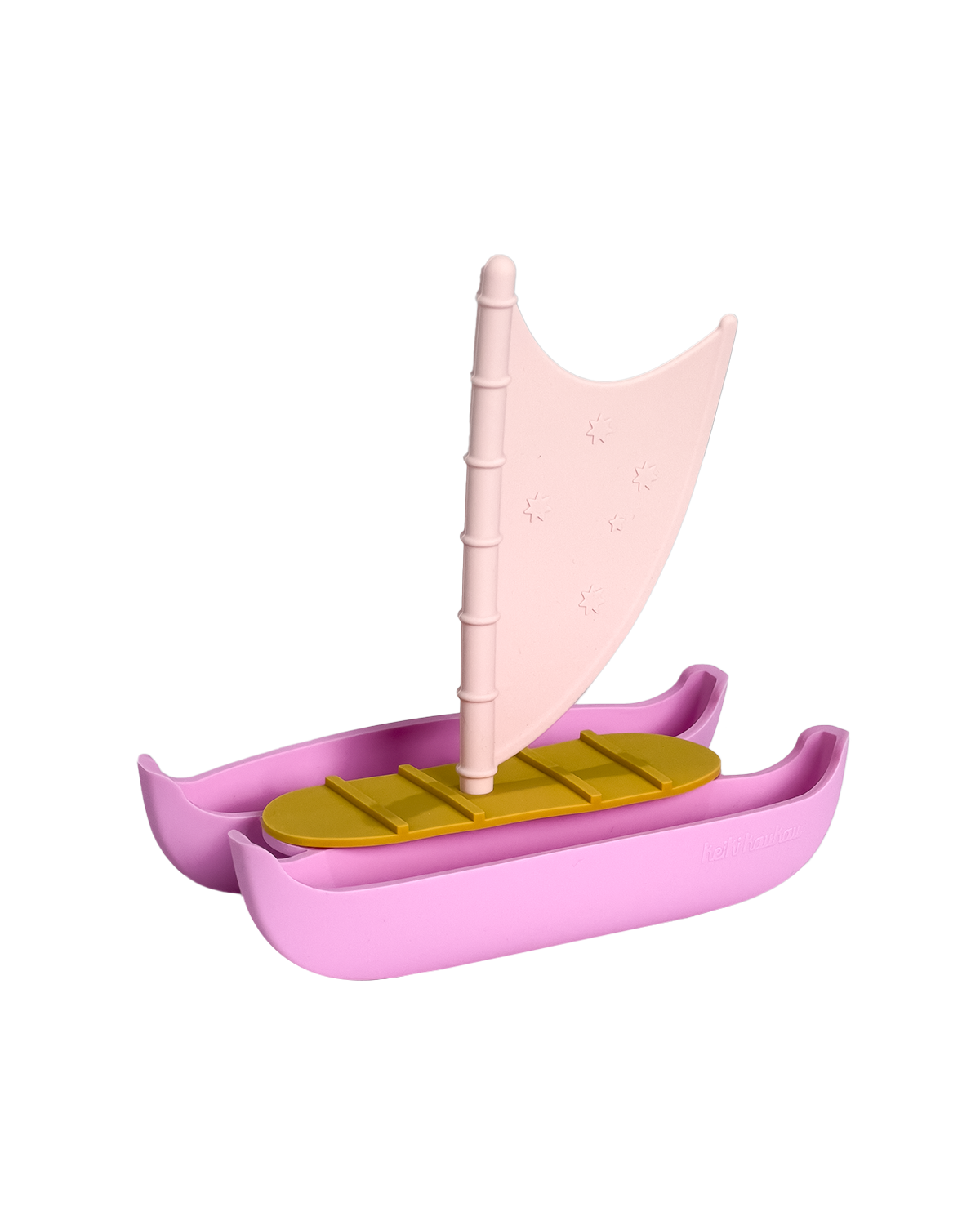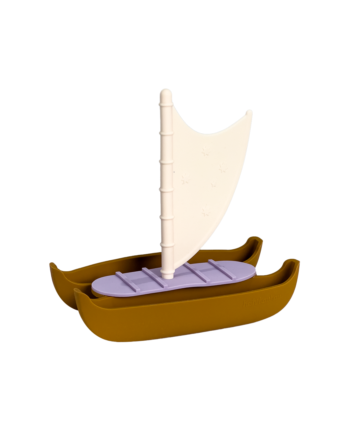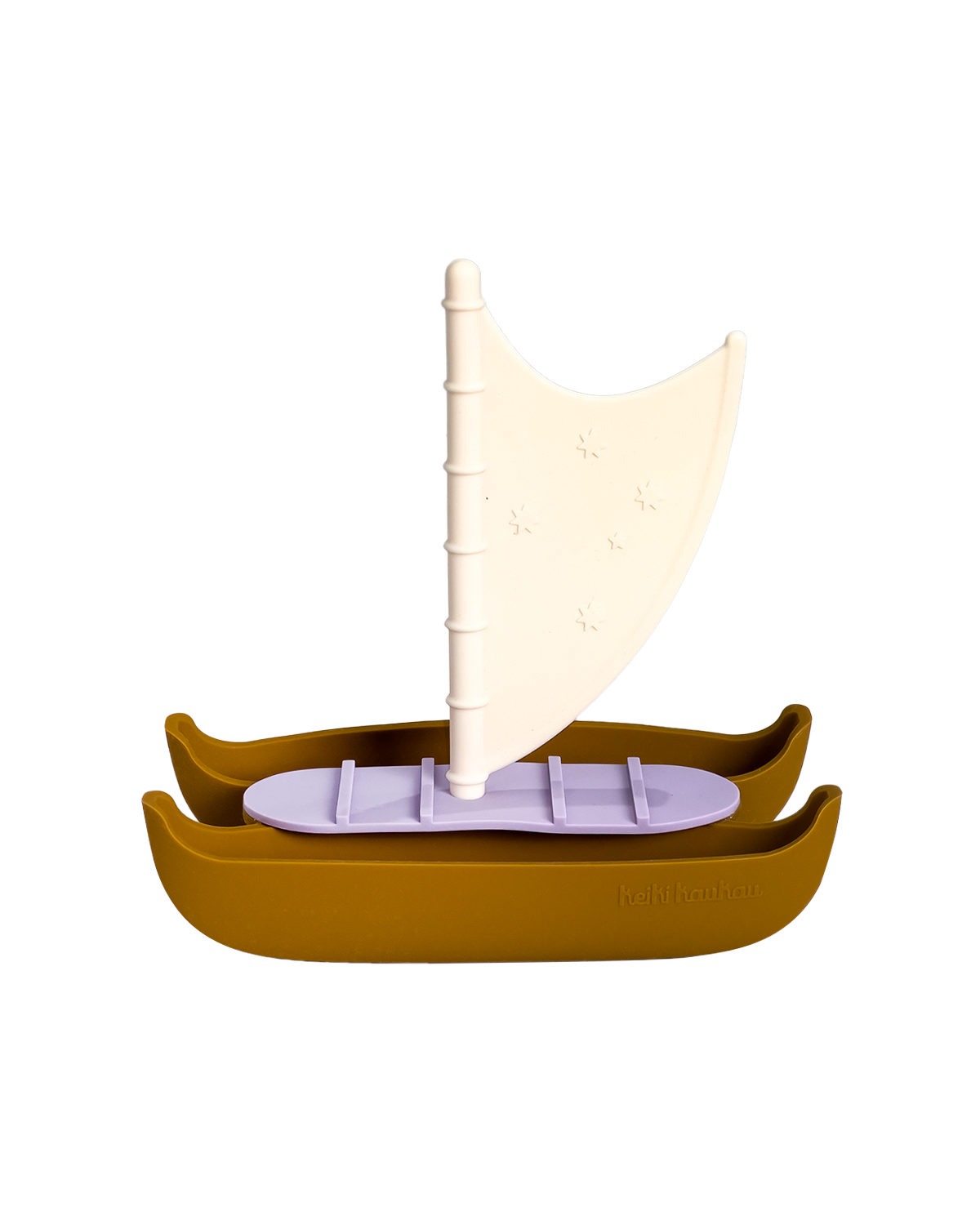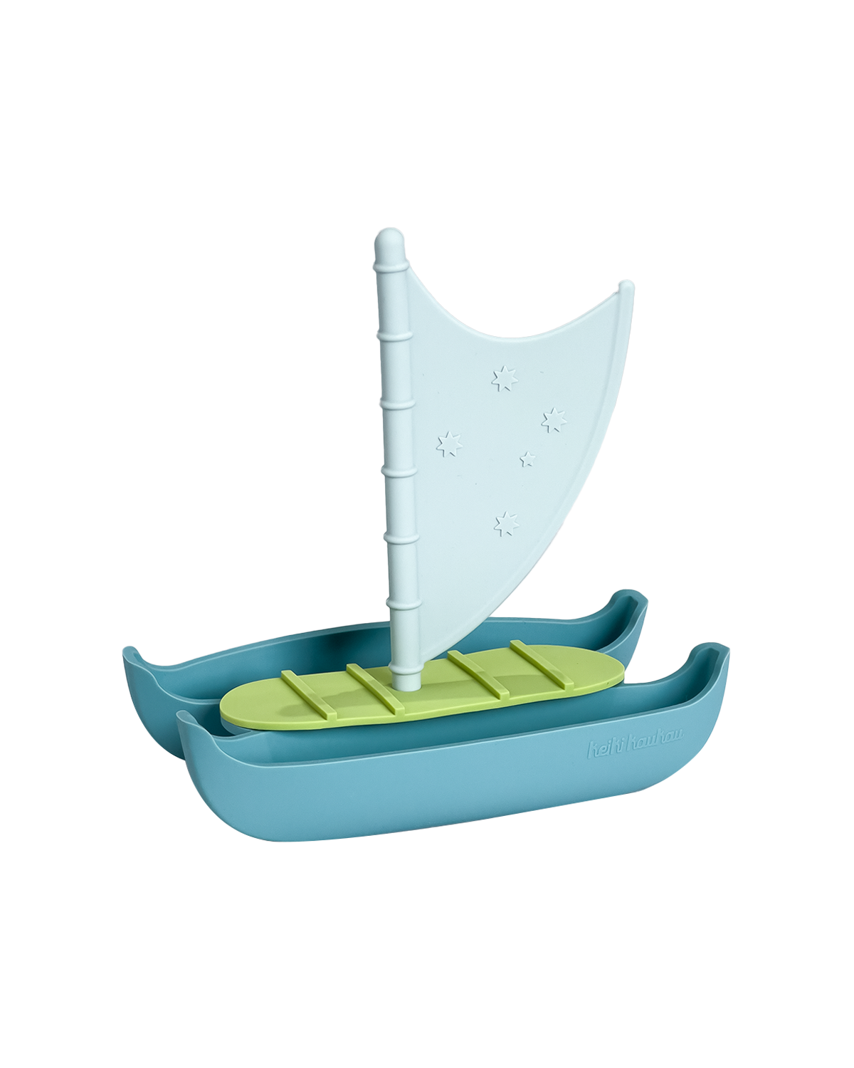 "Bring the adventure to bath or beach time with the Explorer Canoe, a soft silicone toy representing a Hawaiian double-hulled wa‘a. Its gentle, flexible material makes it perfect for little hands to splash, float, and play.