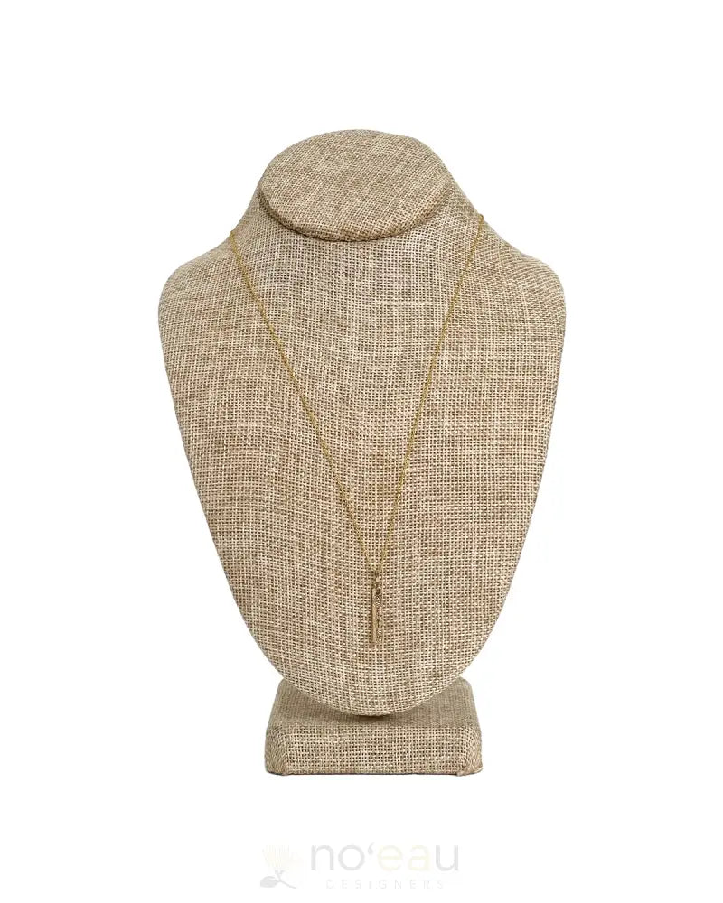 Experience the ultimate sophistication with NOEAU's Heritage Scroll Bar Pendant. Handcrafted in Hawaii with 14k gold filled materials, this timeless piece exudes elegance and simplicity. Choose from three lengths of gold-filled chains to achieve the perfect look. Elevate your style with this exclusive pendant.