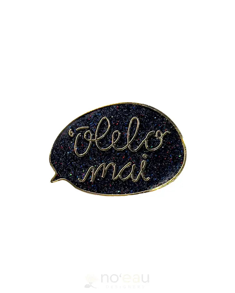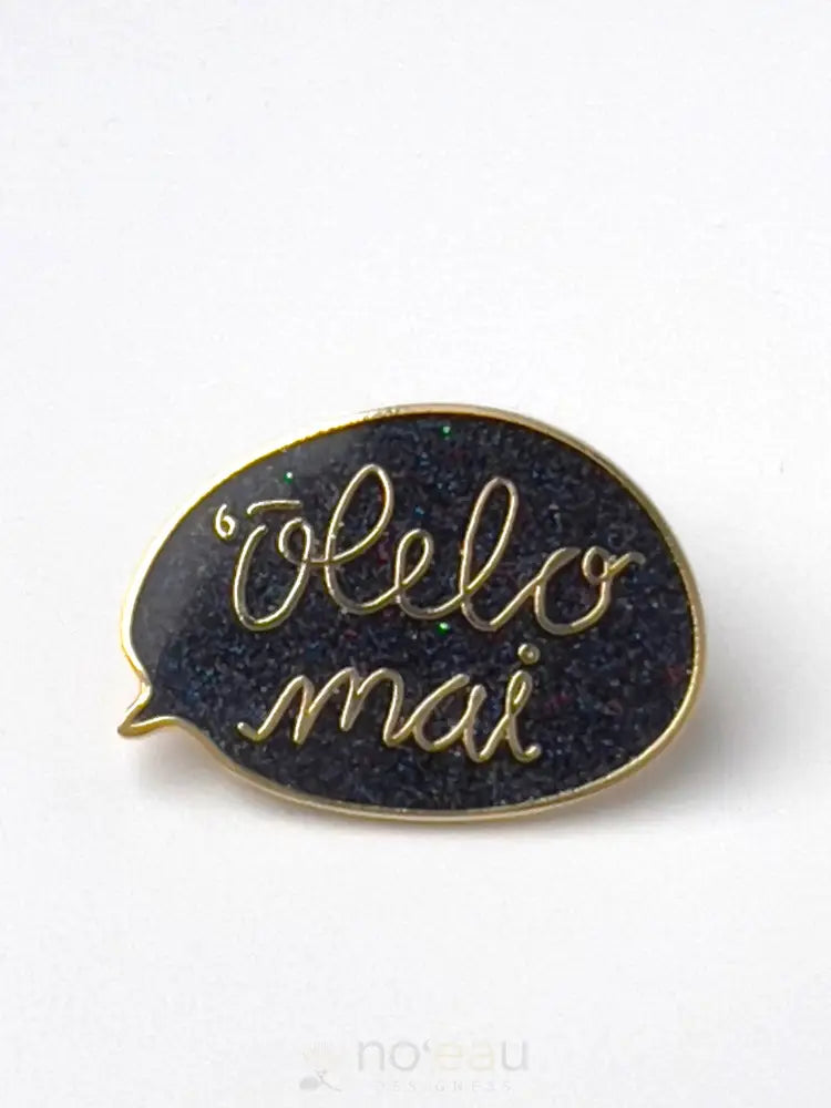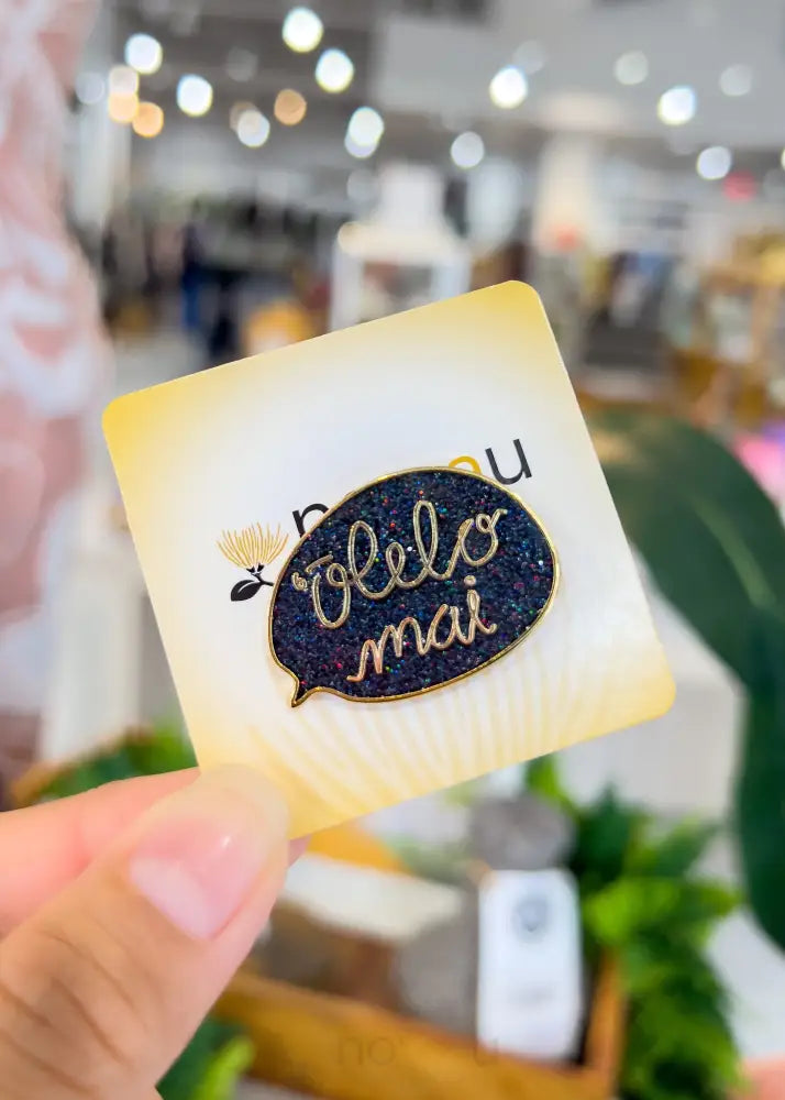 ʻŌlelo mai pin with Black Holographic Glitter enamel.