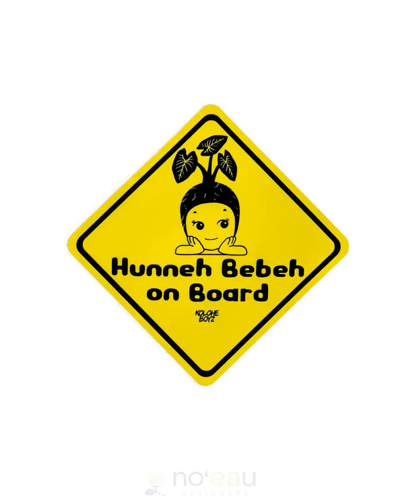 Travel with your little one in style with the KOLOHE BOYZ - Hunneh Bebeh On Board Sticker. This fun and unique sticker will not only add some personality to your car, but it also serves as a helpful reminder for other drivers to be cautious!